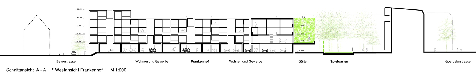 n der Beverstrasse soll ein Geschossbau auf einer bestehenden Tiefgarage errichtet werden. Der Bestand war für eine fünfgeschossige Bebauung mit Wohn- und Geschäftsräumen dimensioniert.