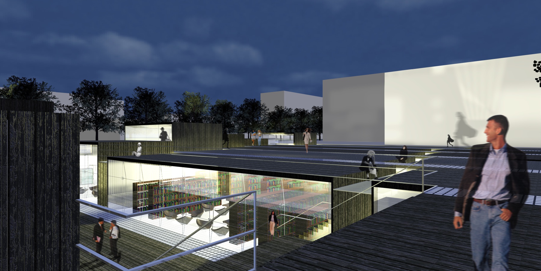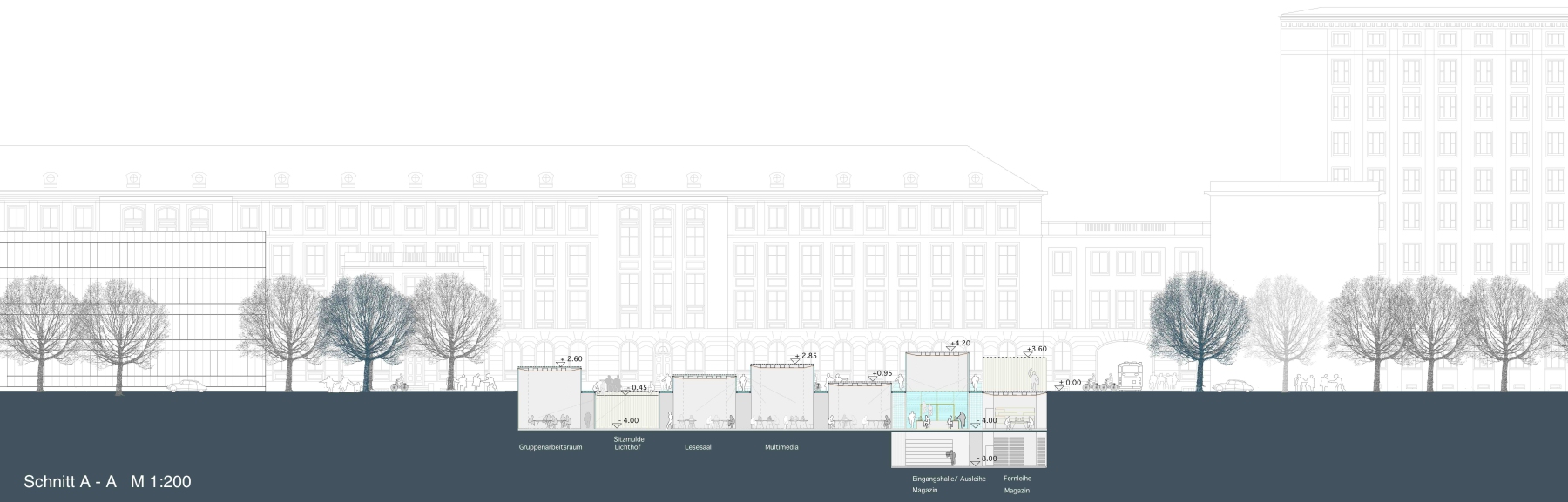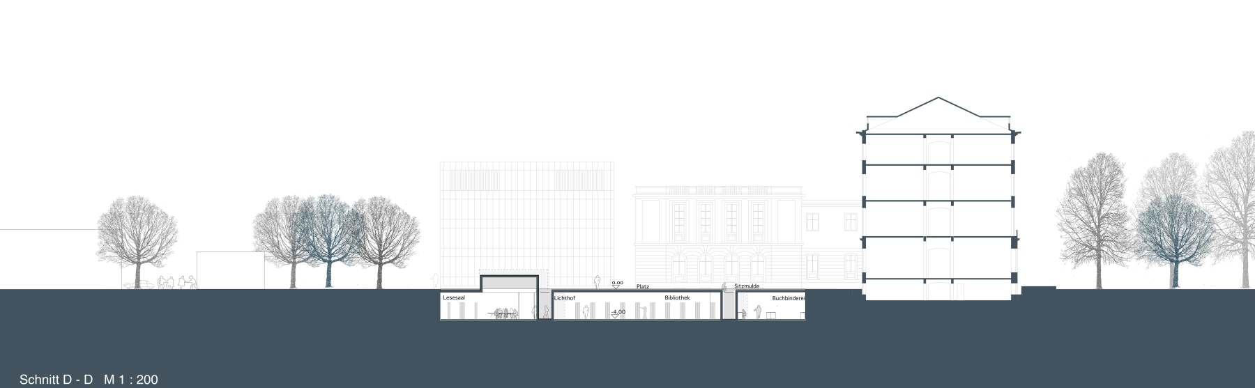 Der Entwurf für die  Bibliothek der Hochschule für Technik und Wirtschaft in Dresden sieht ein Gebäude vor, das eine zentrale Bedeutung im öffentlichen  Leben der HTW inne hat, ohne von dieser Lebendigkeit in seiner Funktion als ein Ort des zurückgezogenen Studiums und konzentrierten Arbeitens beeinträchtigt zu sein.