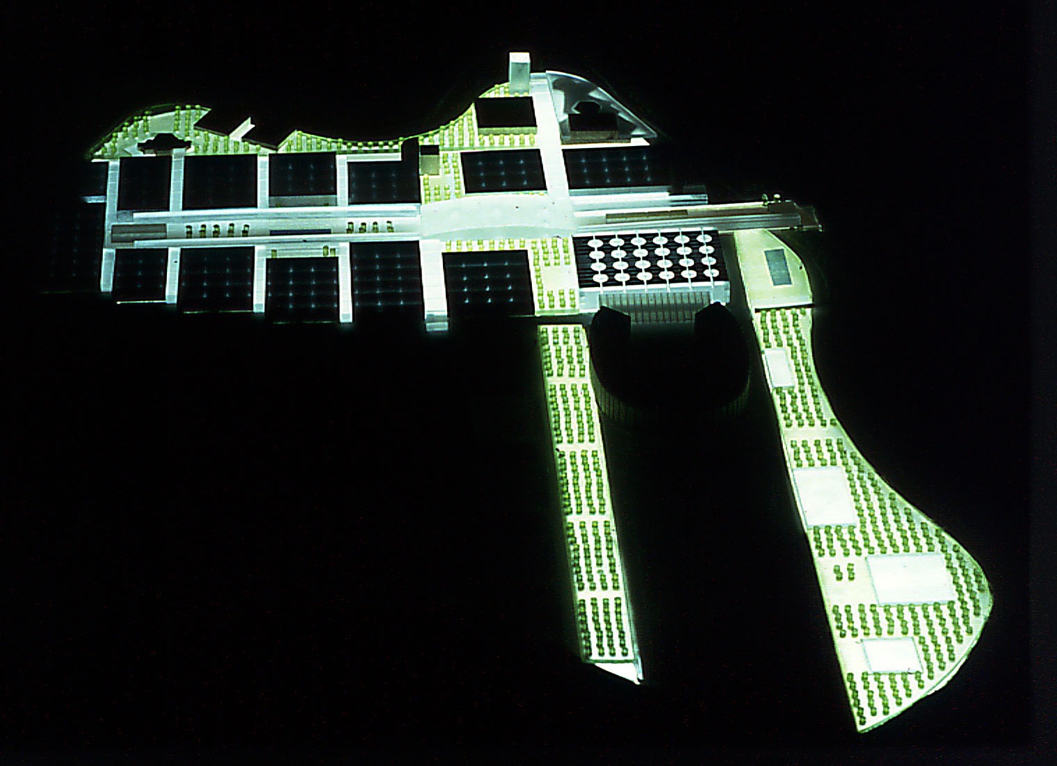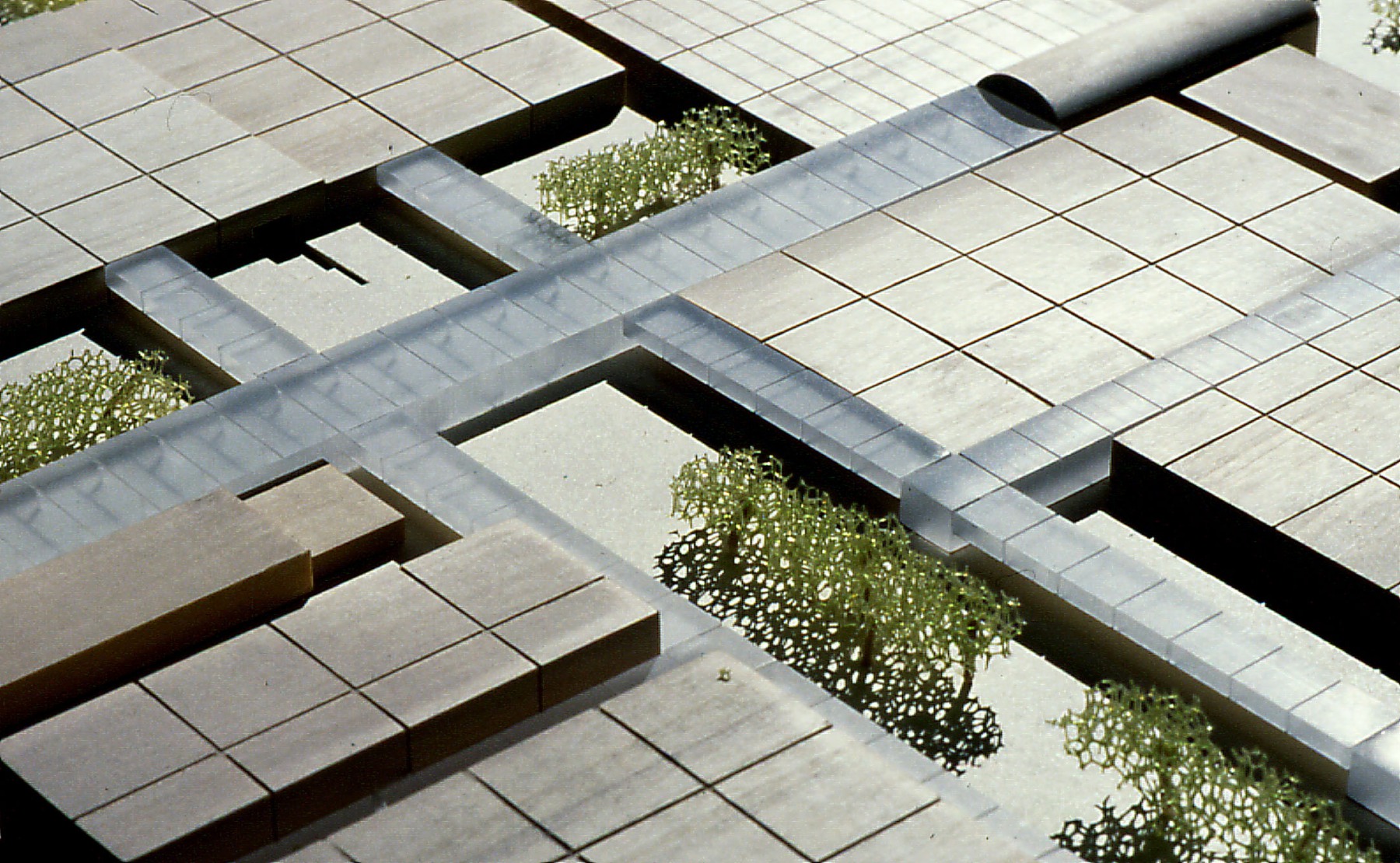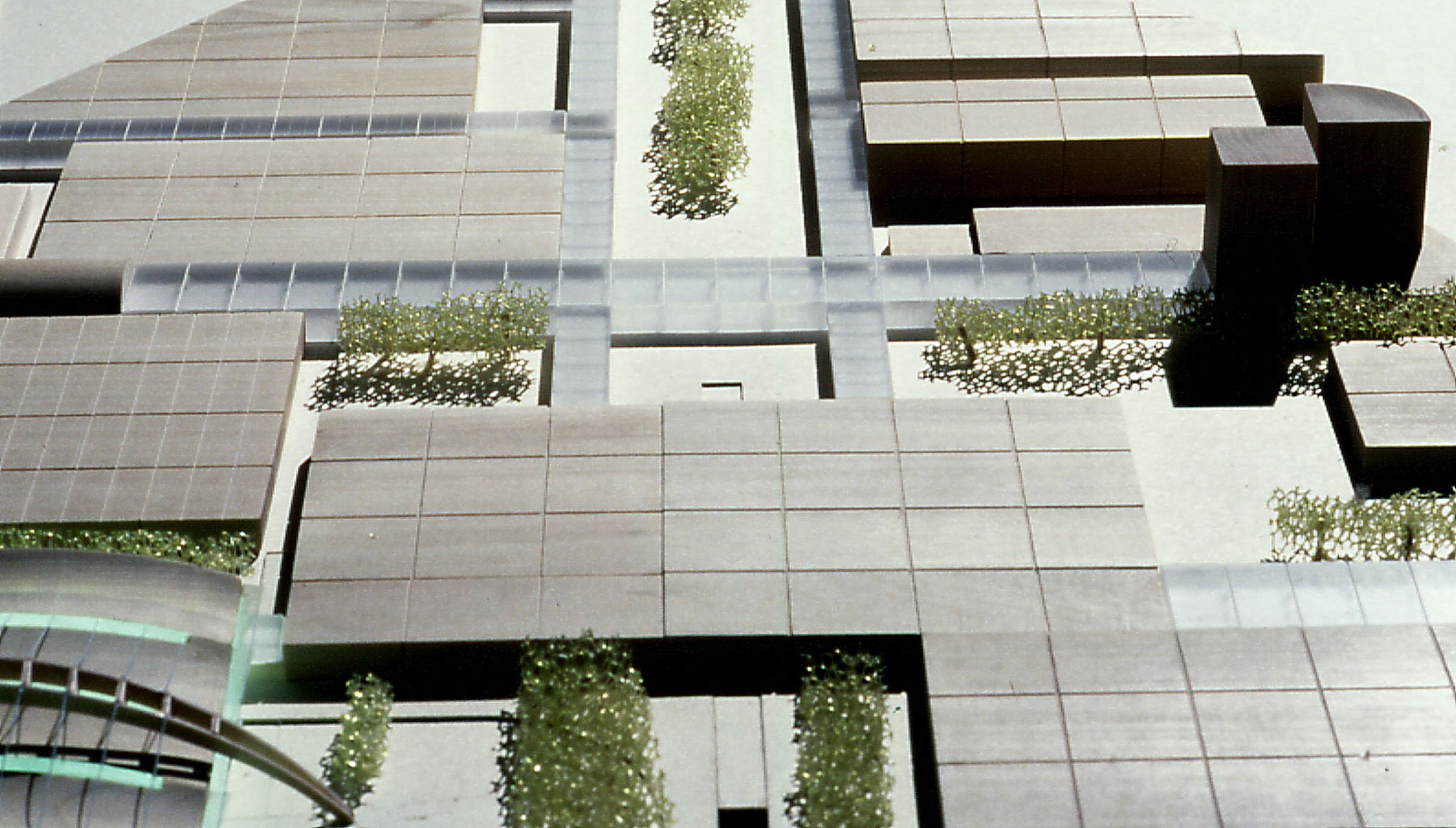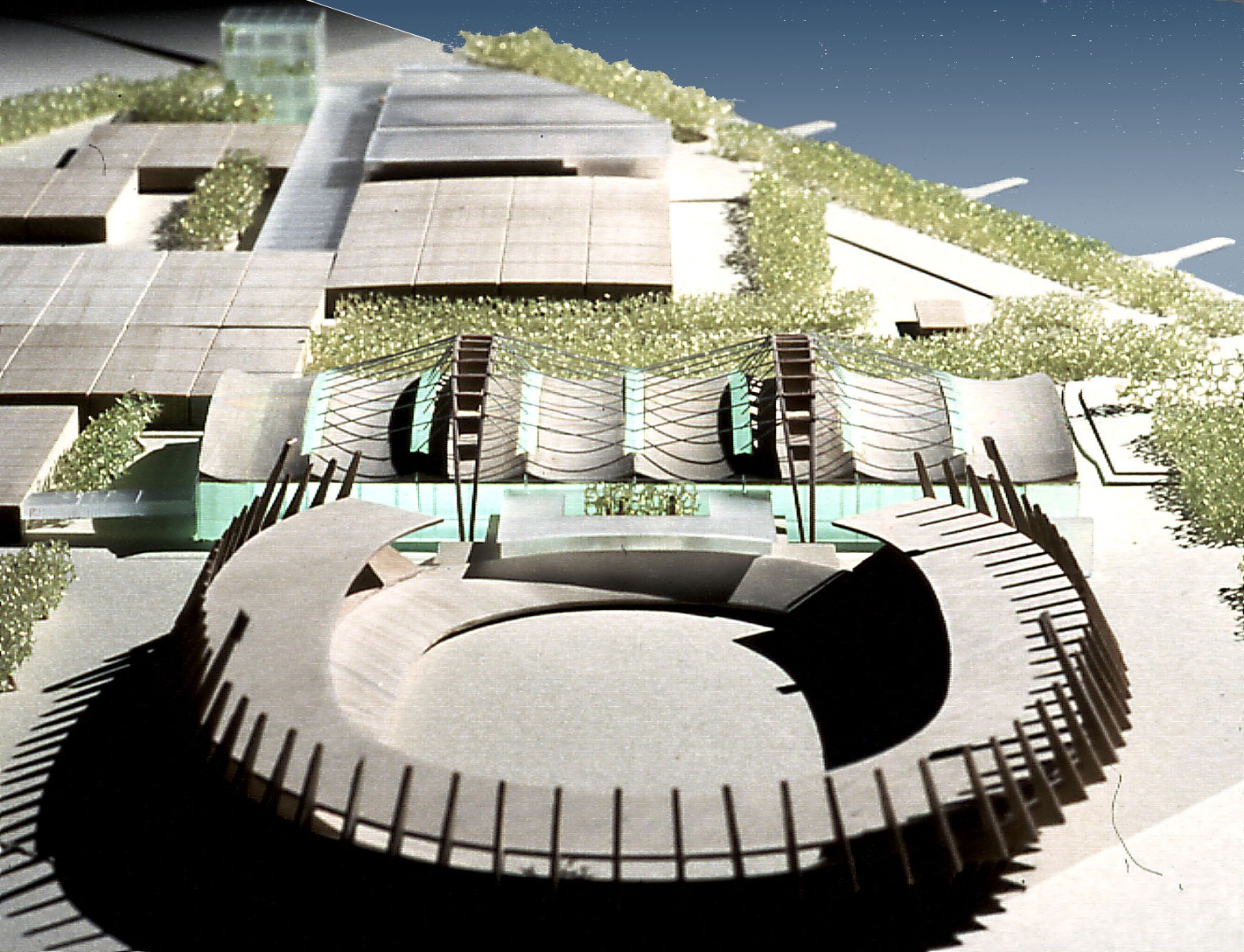 Der Anspruch der Halle, im “Funktionsverbund” zwischen Rheinstadion und Messe zu stehen, begründet ihre städtebaulich im Winkel der beiden Anlagen positionierte Lage und Ausrichtung.