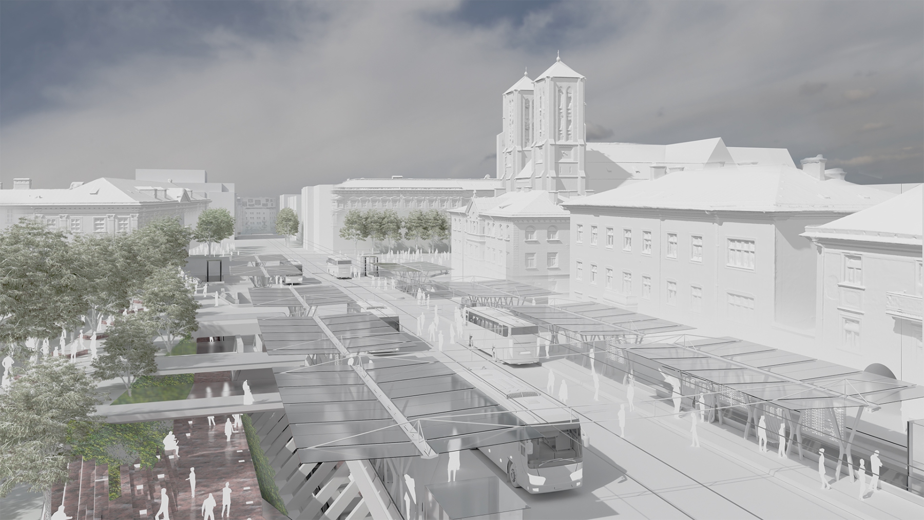 Durch die in der Architektur der Haltestelle „Mirabell“ ange- legten, großzügigen Verknüpfungen der ortsprägenden Schich- ten um den Mirabellplatz: