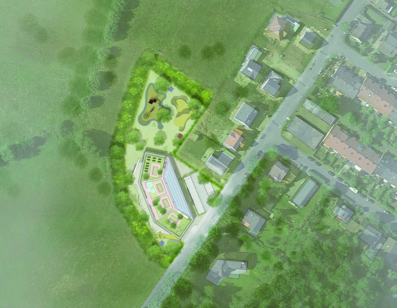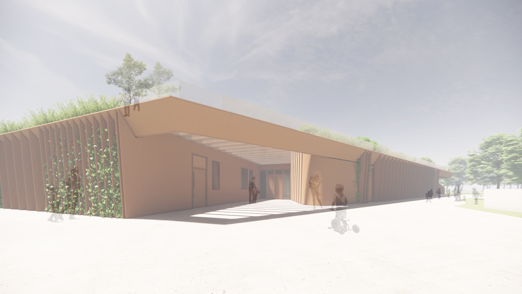 Durch ihre eigenständige Gestalt und differenzierte Gliederung werden das Gebäude und die Freianlagen zu einem Baustein in der pädagogischen Arbeit, sollen die pädagogischen Fachkräfte dabei und unterstützen, eine Umgebung zum Lernen und Wachsen zu schaffen.