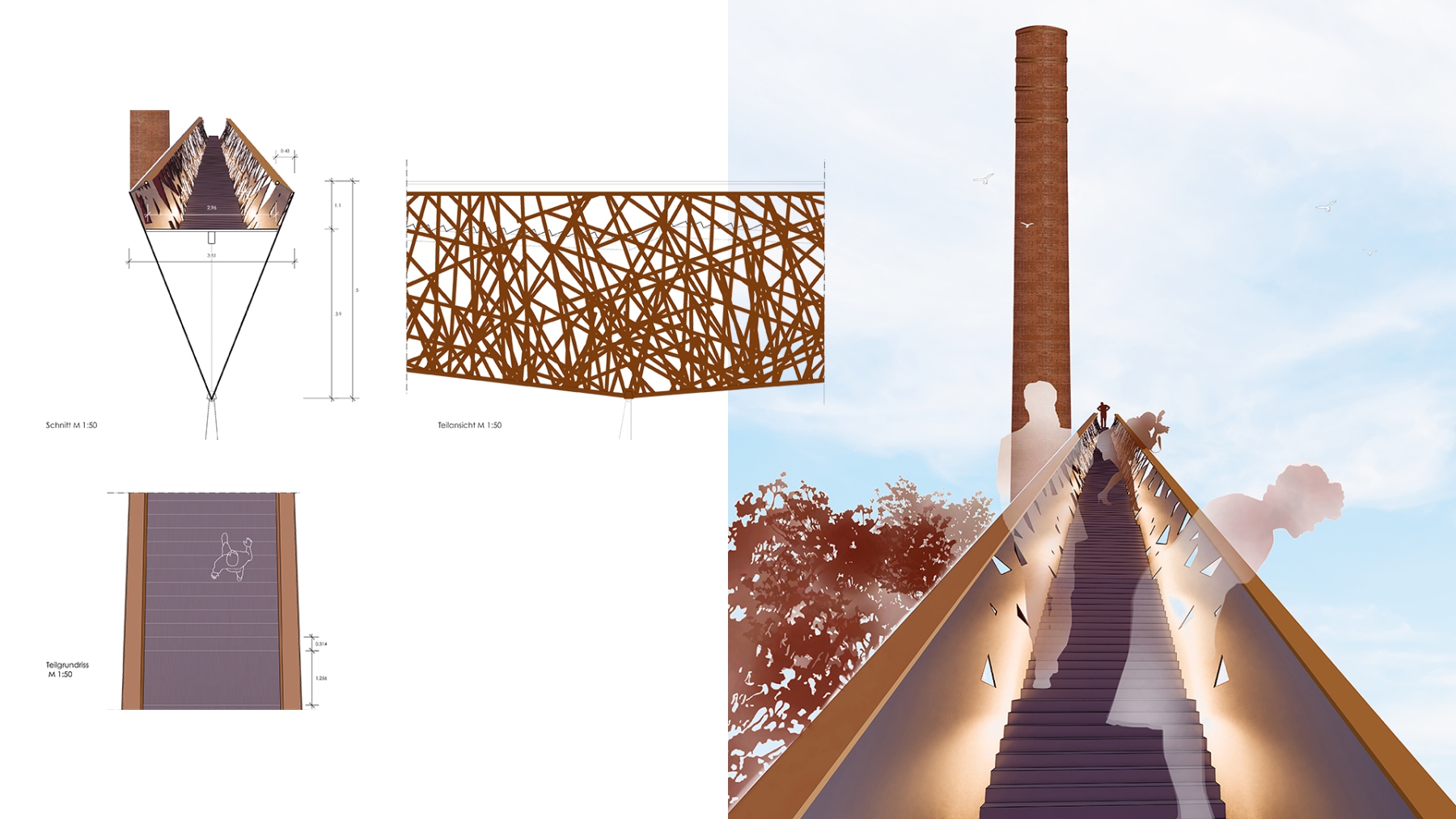aus wetterfestem Baustahl COR-TEN B/S355J2W verwendet.