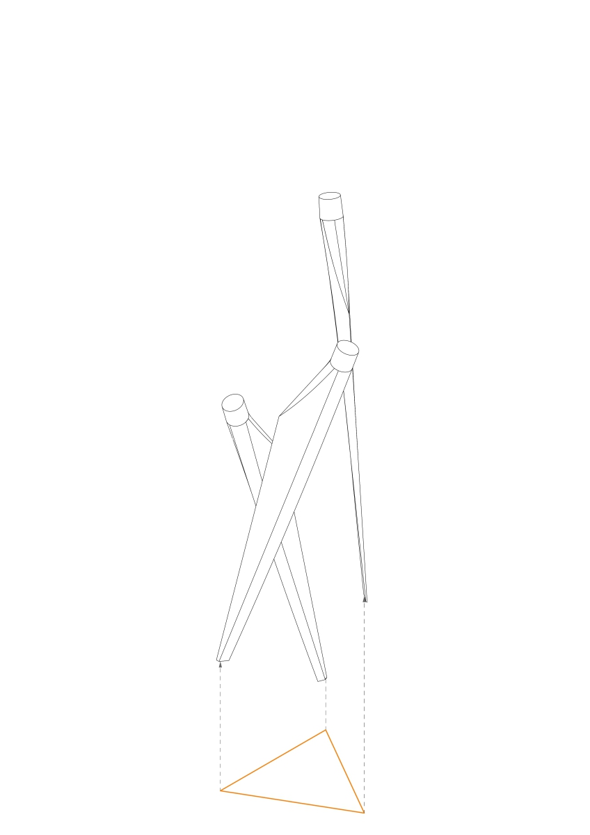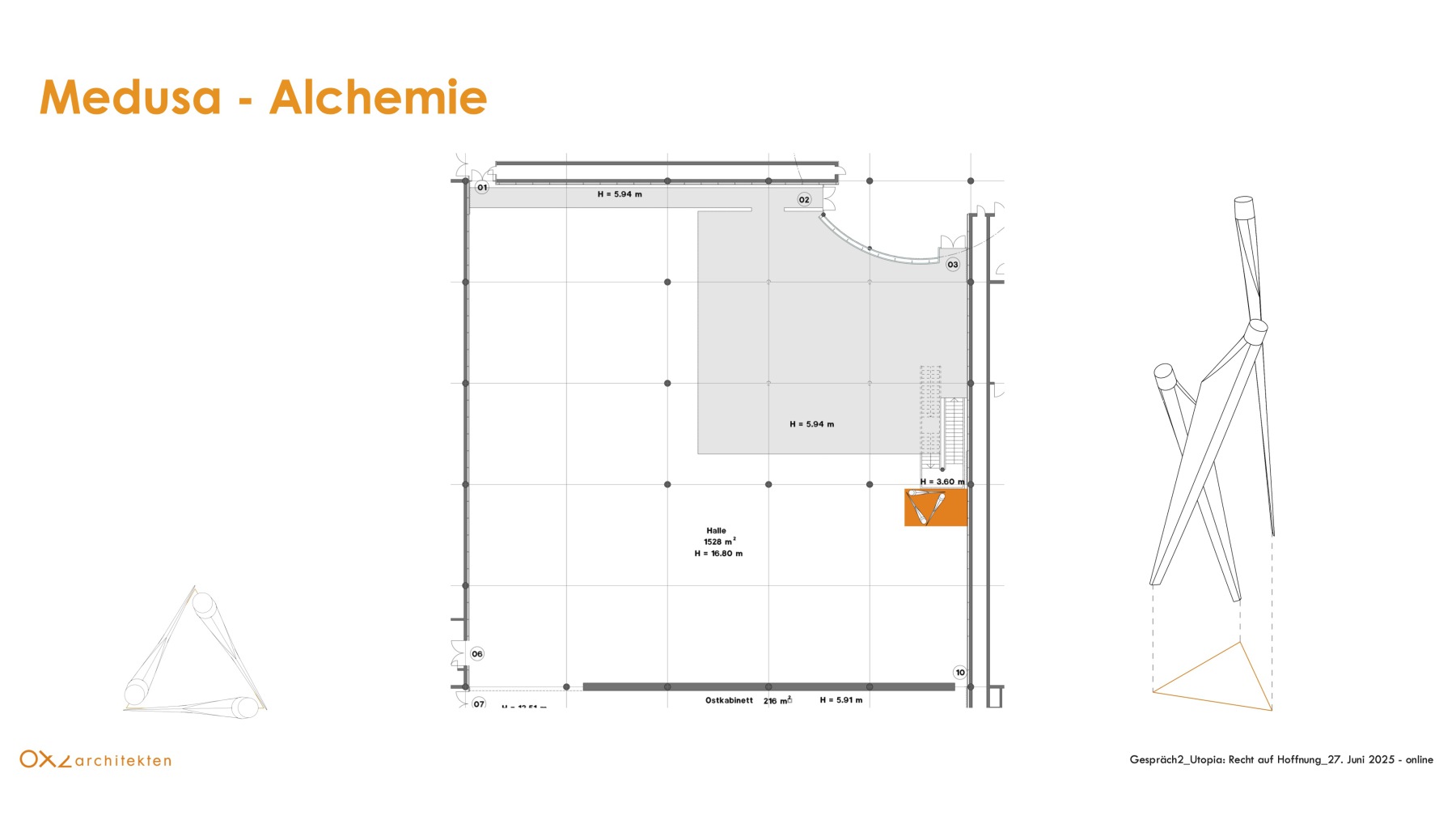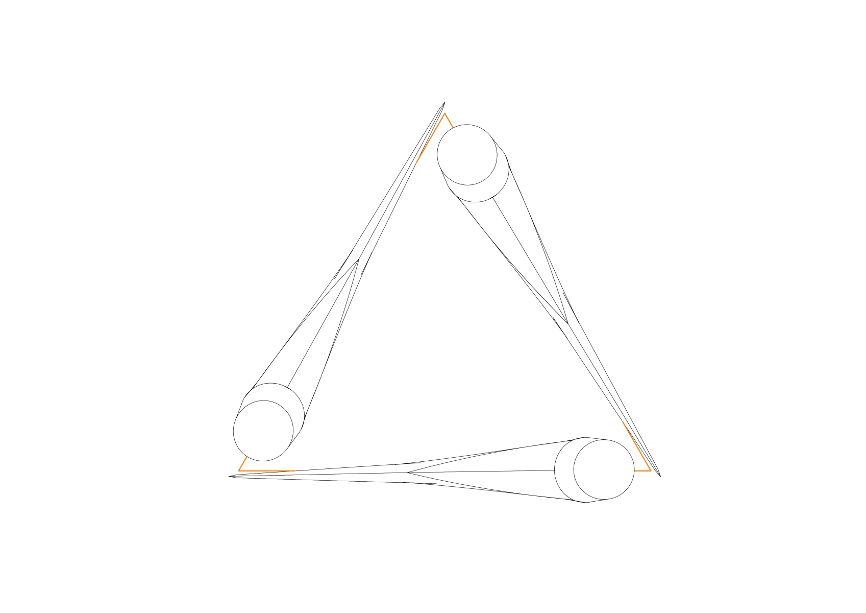 Sie bilden ein Dreieck im Raum. Inspiriert von der Symbolik des alchemistischen Elements Wasser, das für Wandlung, Bewegung und Leben steht.