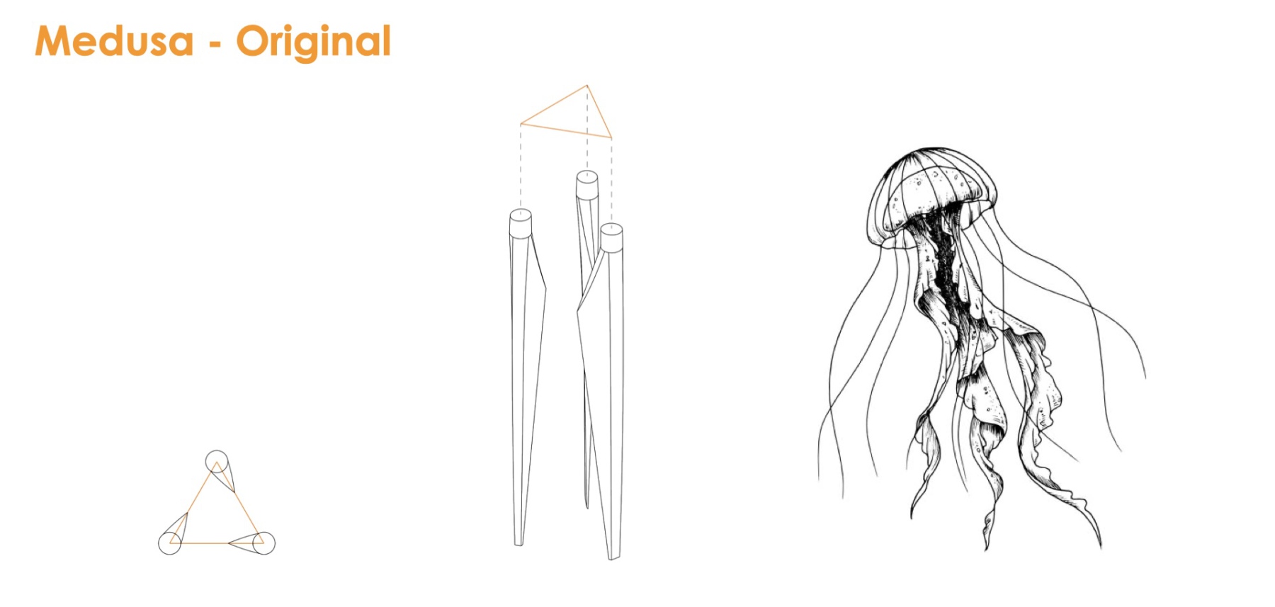 Die Rotorblätter symbolisieren eine Medusaqualle. Wie die Meereswesen wirken die Rotorblätter schwebend, beinah schwerelos und zugleich kraftvoll und präsent.